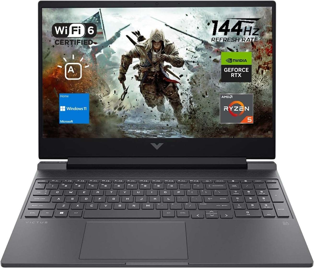 HP Victus 15 Gaming Laptop, 15.6″ FHD 144Hz Display, AMD Ryzen 5 7535HS, 16GB DDR5 RAM, 512GB PCIe M.2 SSD, NVIDIA GeForce RTX 2050, HDMI, Webcam, Backlit Keyboard, Wi-Fi 6, Windows 11 Home, Silver