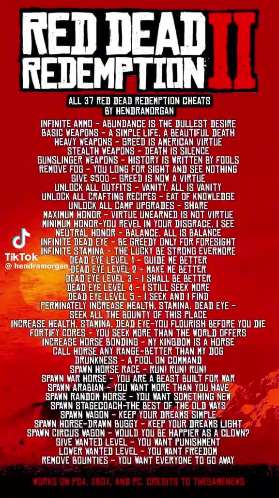 @the.real.arthur67 Here are some rdr2 cheat codes you can use if you go to setti…